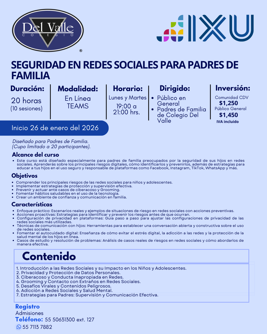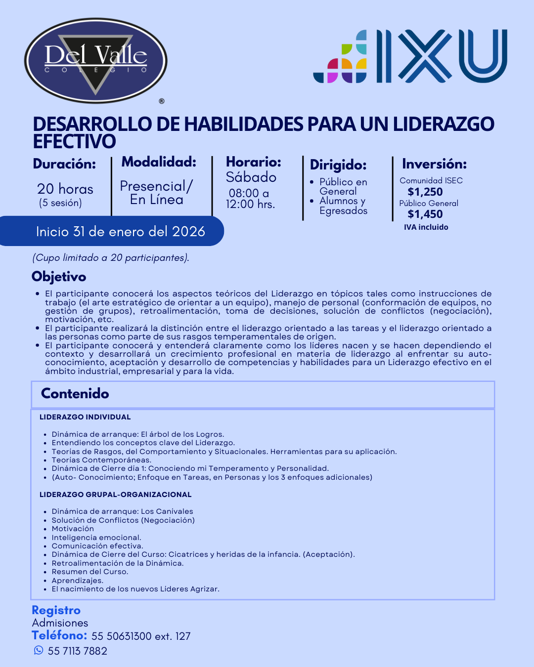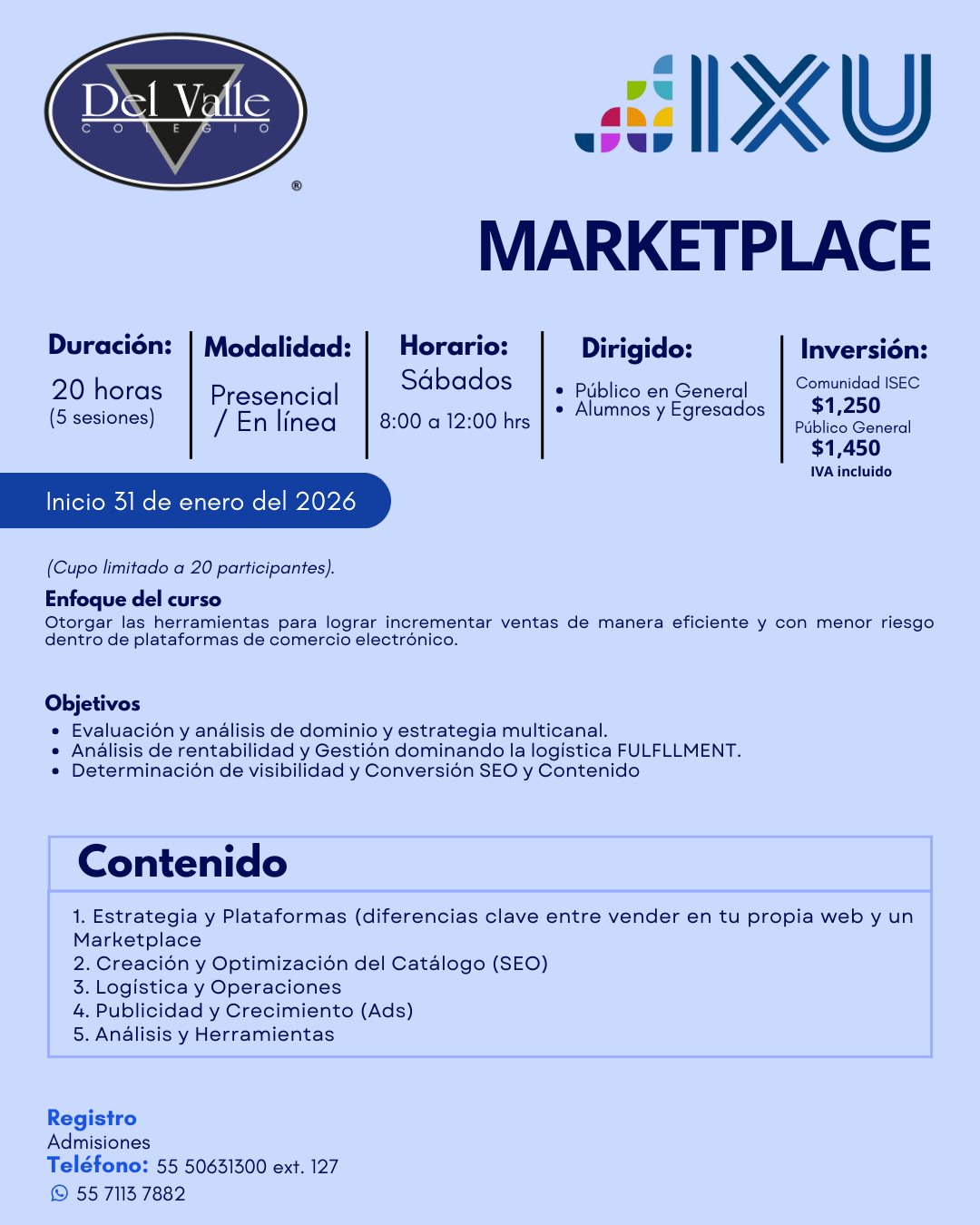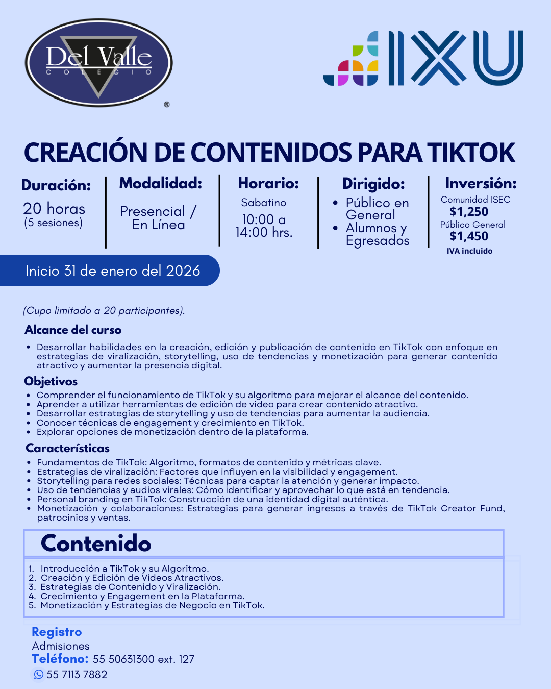 ADMISIONES: 55 5063 1500 - Opcion 1 WHATSAPP: 55 7113 7882 CRÉDITO Y COBRANZA WHATSAPP: 55 1700 9348 - 56 6747 7007